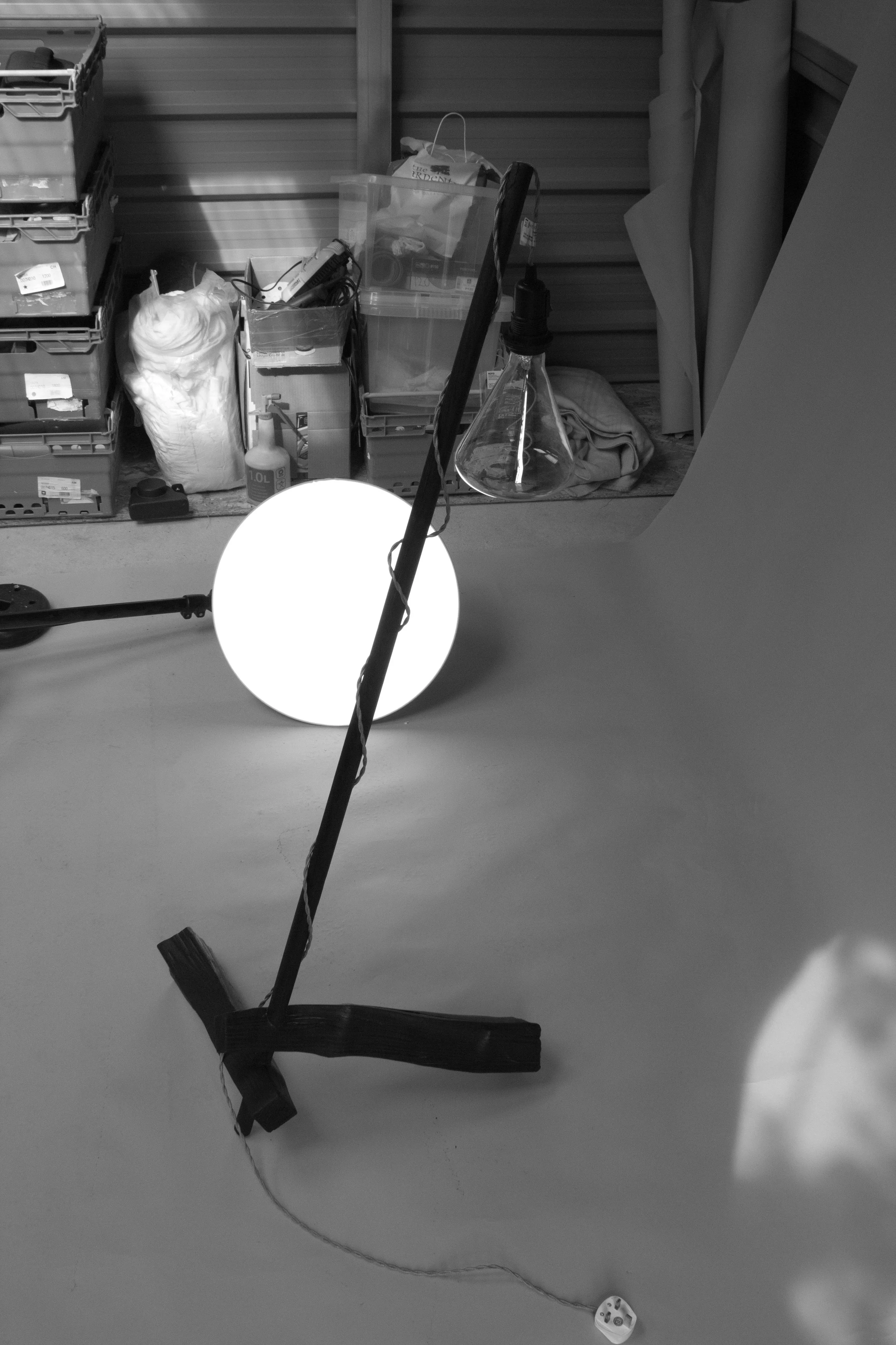 The lamp is handmade in European kiln dried ash and green, riven, wild Irish ash. The green legs clamp around the dowel as they dry out. No screws or glue are used in its construction.